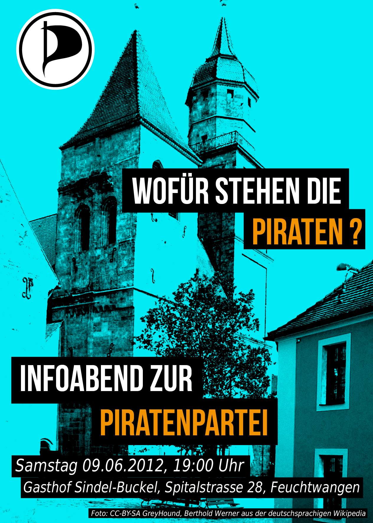 Am 09.06.2012 findet dort ab 19.00 Uhr eine Informationsveranstaltung statt. Ort ist der Gasthof Sindel-Buckel in der Spitalstraße 28 in Feuchtwangen. Dominik Kegel, politischer Geschäftsführer im Bezirksvorstand Mittelfranken, erklärt: „Wir wollen uns zunächst kurz vorstellen und Vorurteile gegenüber der Piratenpartei ausräumen.“ Im Anschluss an die Präsentation ist Zeit für Diskussionen und Fragen aller Art.